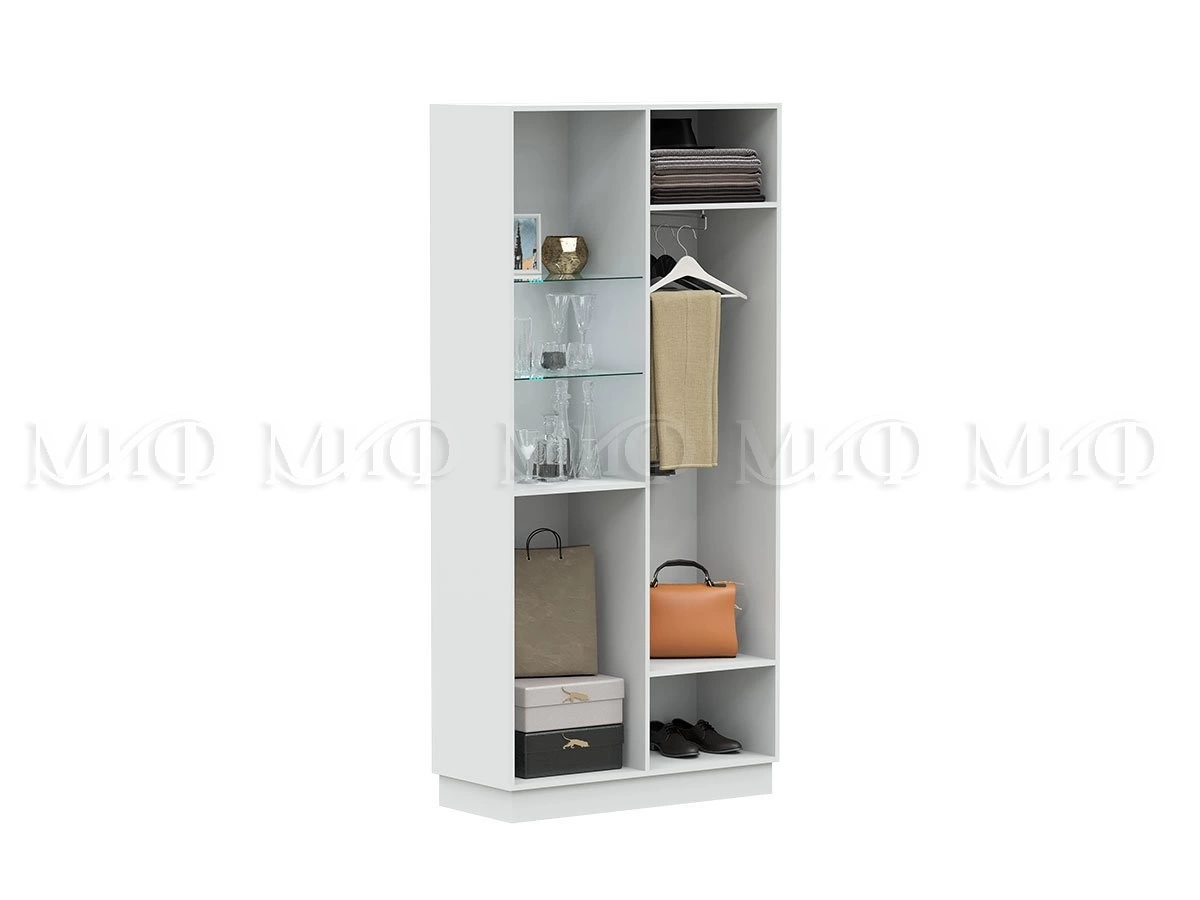 - Состав гостиной по модулям: Полка навесная+ТВ-Тумба+Шкаф со стеклом низкий+Шкаф со стеклом высокий