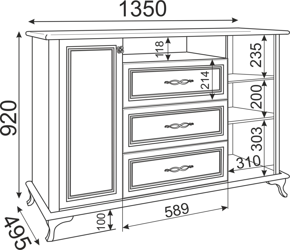 7. Вместе с двумя Пеналами М01 (собранными один на левую, другой на правую сторону) комод составляет законченную мебельную композицию для гостиной комнаты.