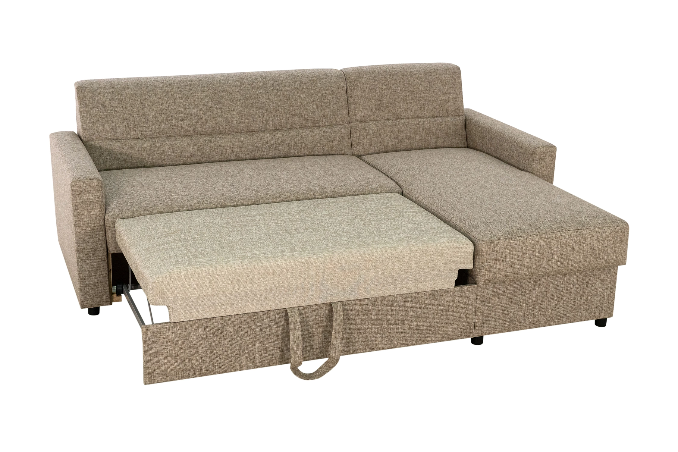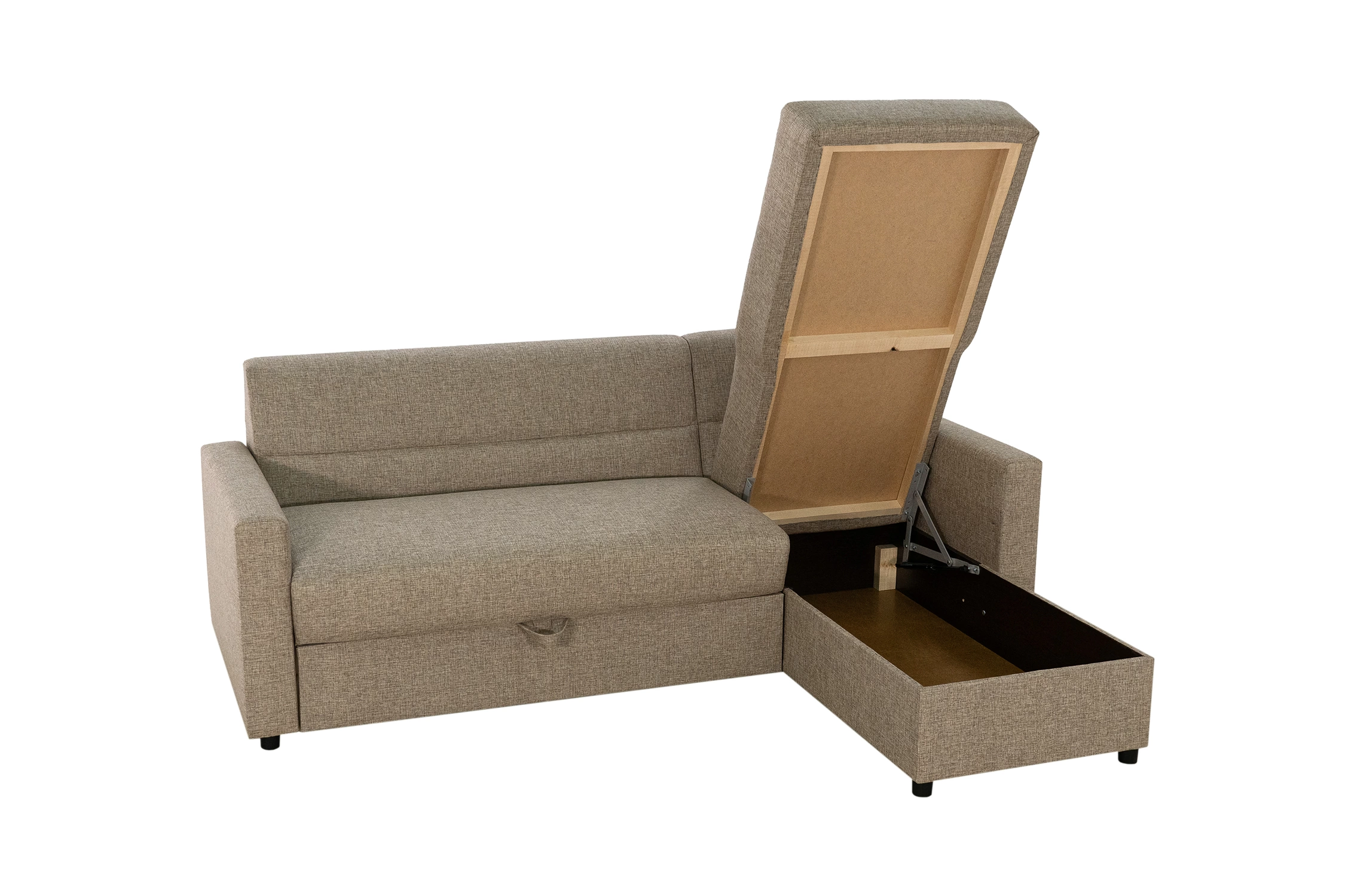 - Модель имеет большой ящик для постельного белья. Он расположен в угловой части.