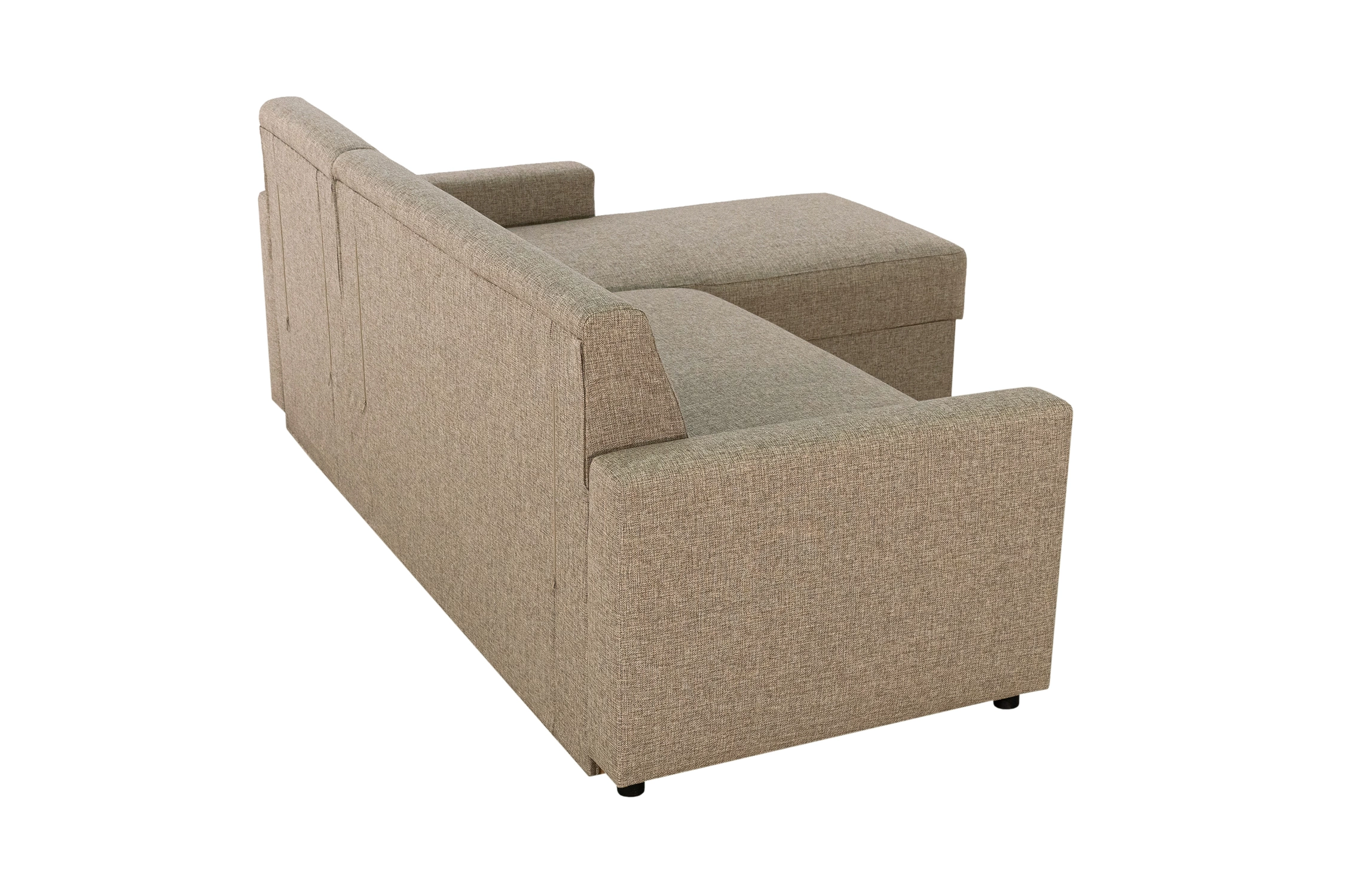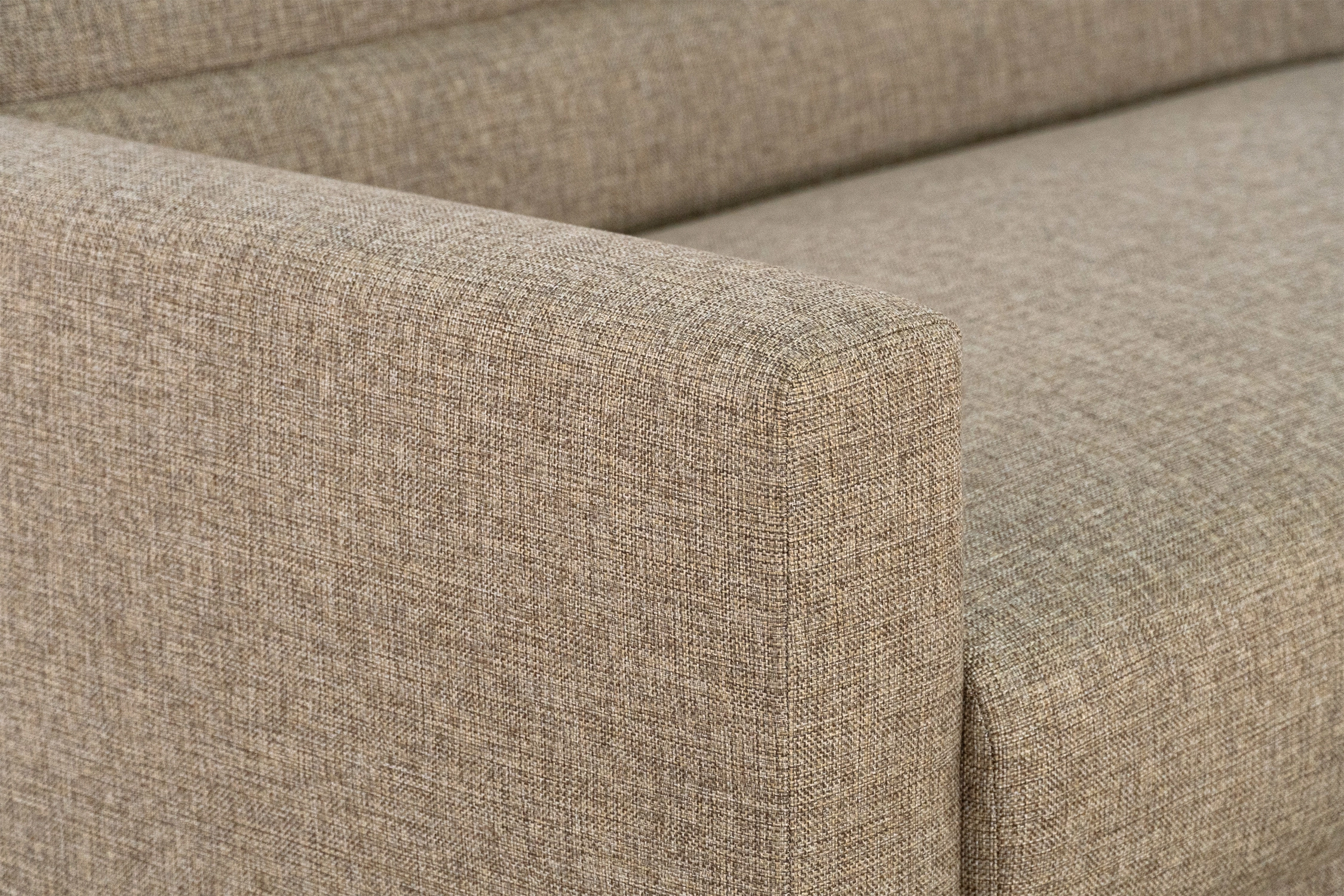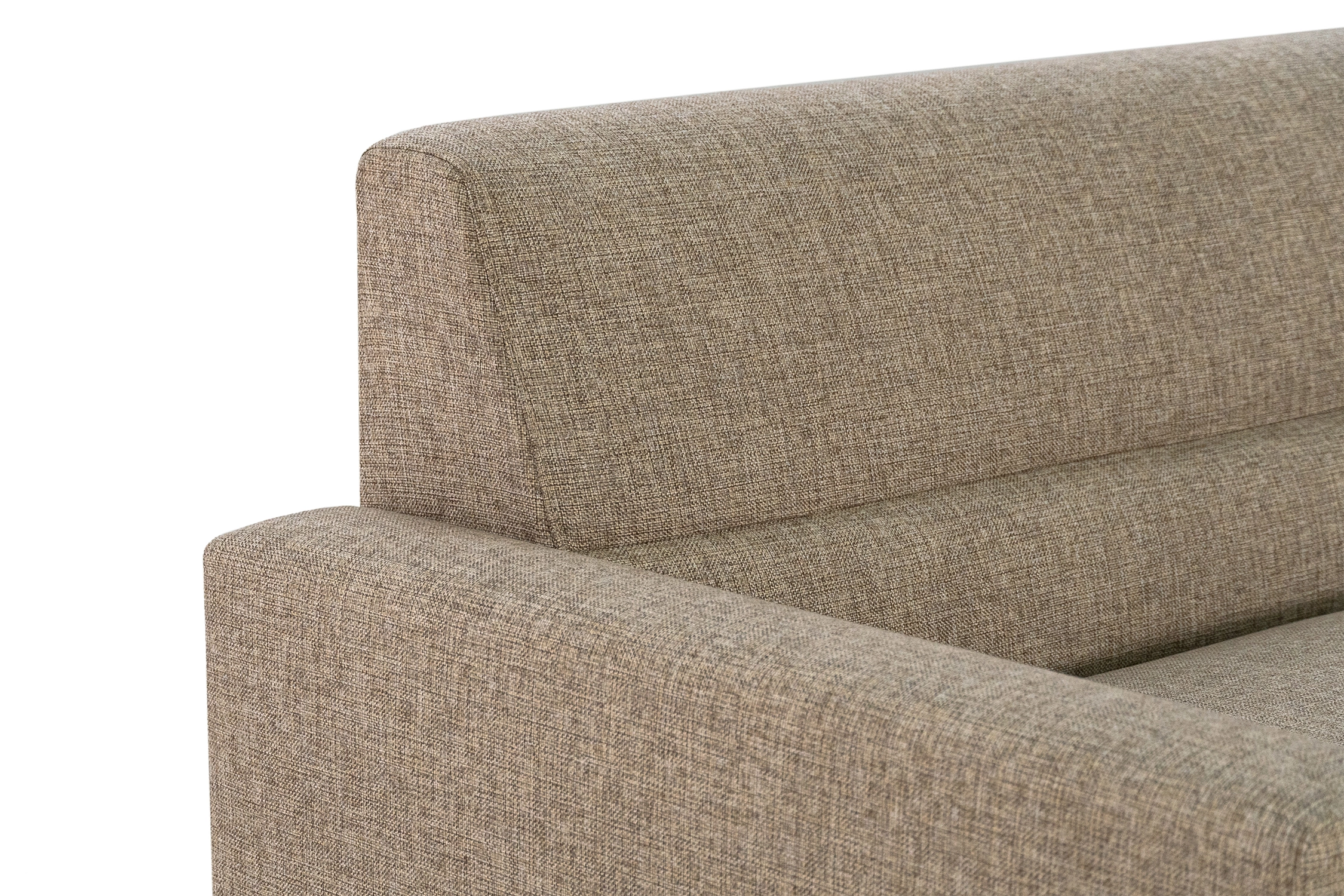 Однотонный угловой диван из рогожки темно-бежевого цвета