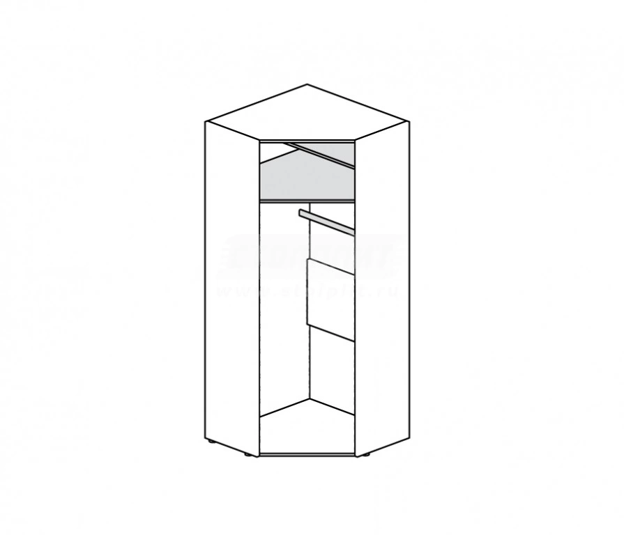 Этот угловой шкаф органично впишется в интерьер современной прихожей. Он отличается на удивление большой вместимостью. В шкафу можно аккуратно разместить одежду и аксессуары. В дизайне шкафа совмещаются контрастные натуральные оттенки.