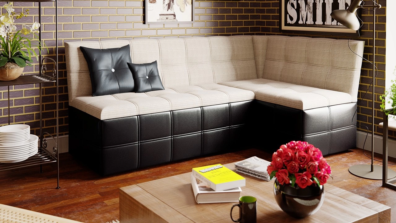 - Материал: ЛДСП/Обивочный материал- Кожзам темный/ткань светлая