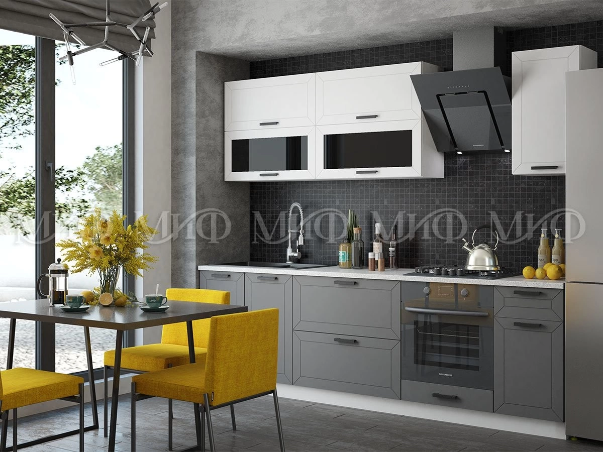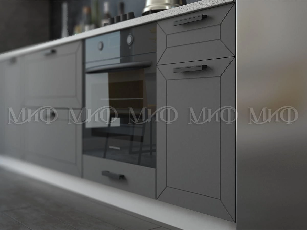 Изящная кухня «Монро» поражает своим величием, надежностью и основательностью. Строгие лаконичные формы и приглушенная цветовая палитра фасадов, настоящая находка для людей, любящих минимализм и простоту интерьера