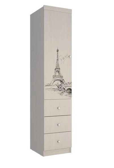 - Пенал оснащен секцией с металлической штангой и выдвижными ящиками на шариковых направляющих глубиной 450 мм.