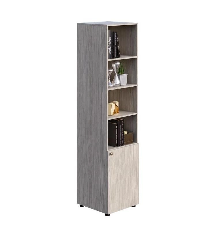 - Пенал оснащен секцией с закрытыми полками и секцией с открытыми полками.