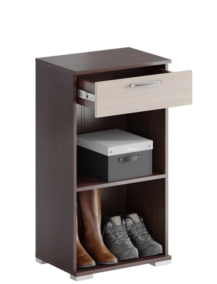 - В тумбе 2 секции под обувь и ящик на шариковых направляющих длиной 300 мм.